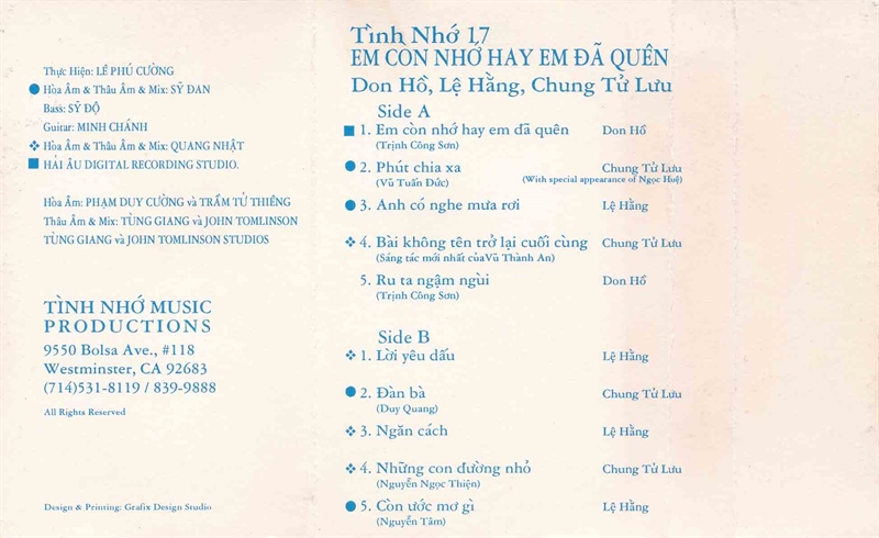 Tình Nhớ Tape 17 – Em Còn Nhớ Hay Em Đã Quên – Don Hồ – Lệ Hằng – Chung Tử Lưu (KGFR)