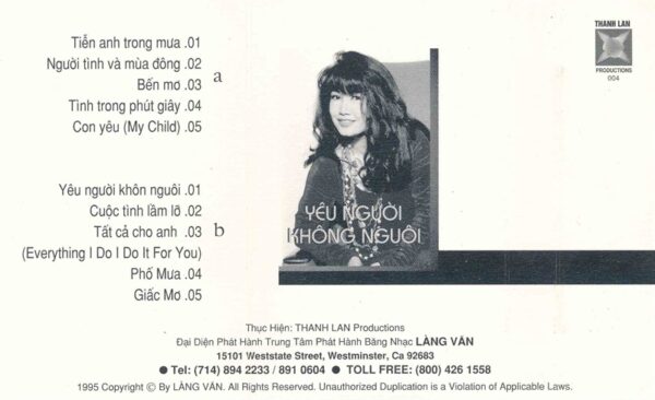 TL Tape CD4 – Yêu Người Khôn Nguôi – Thanh Lan (KGTUS)