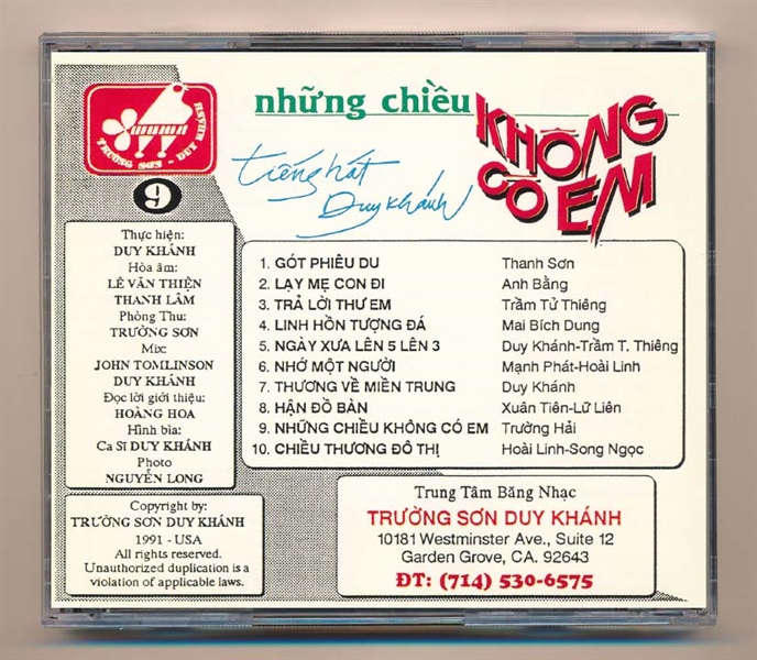 TSDK CD9 – Những Chiều Không Có Em – Duy Khánh (3G) KGTUS