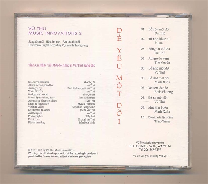 Vũ Thư CD2 – Để Yêu Một Đời – Don Hồ – Ý Lan (Discque Americ) KGMG