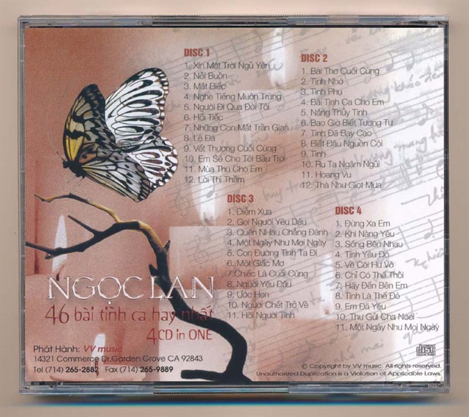 VV Music CD – 46 Bài Tình Ca Hay Nhất – Tiếng Hát Vượt Thời Gian – Ngọc Lan (4CD-CEI, Trầy)